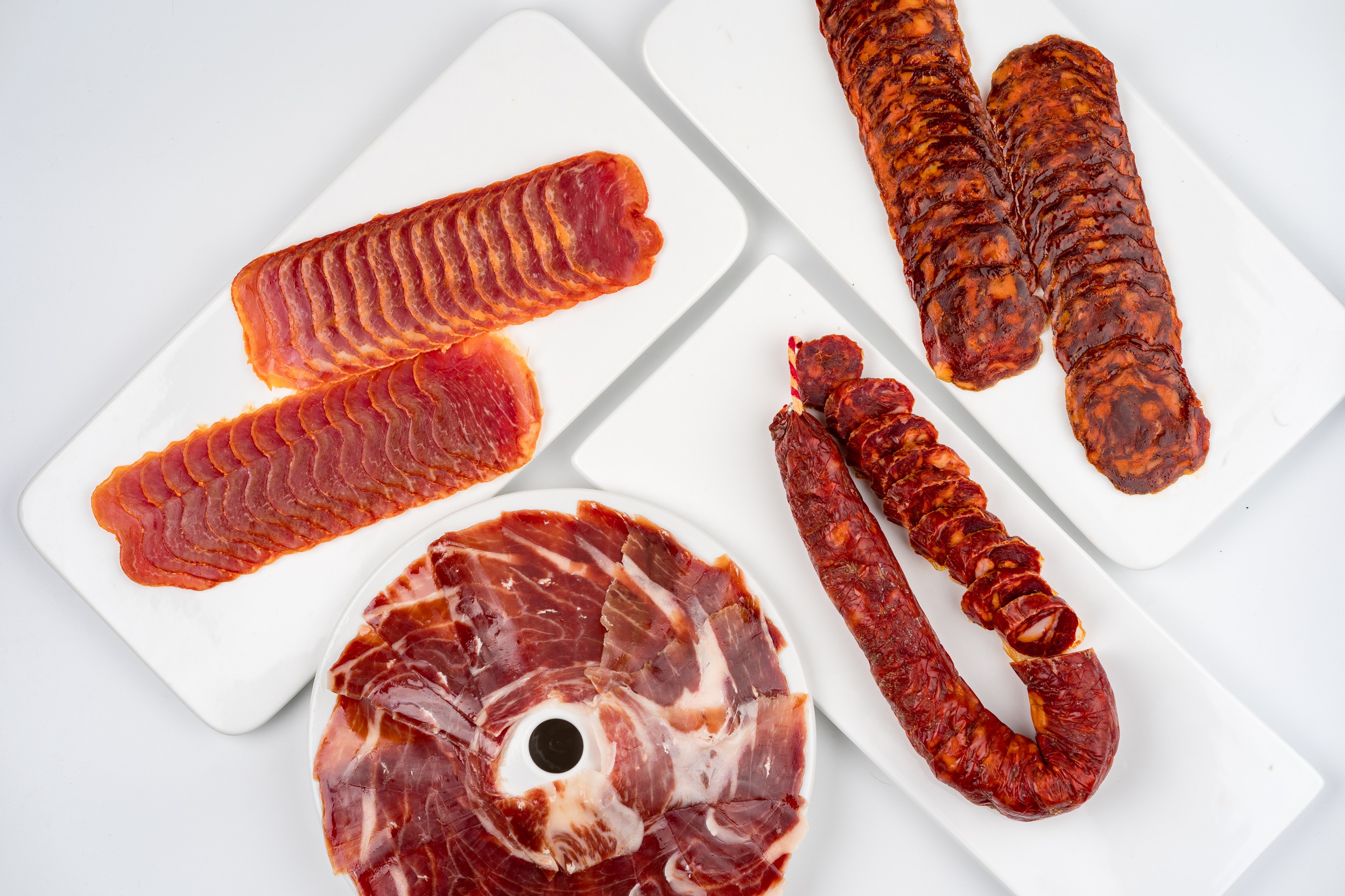 虽然这样说很自命不凡,但伊比利亚火腿是皇冠上的宝石,是最珍贵的系列,是世界美食的明星产品之一。这种类型的火腿来自于世界上独一无二的品种:伊比利亚猪。属于这一品种的大多数猪长期生活在一个非常独特的环境中:dehesas(地中海野生牧场)。在这里,它们以著名的橡子为食,这就是 "伊比利亚橡果火腿 "名称的由来。此外,猪腿的腌制时间甚至能超过三年以上,而且在腌制过程中得到的待遇是真正的独一无二。伊比利亚火腿不仅以其名称本身吸引我们,而且一旦我们品尝它,它的强烈和令人上瘾的味道就会征服我们。